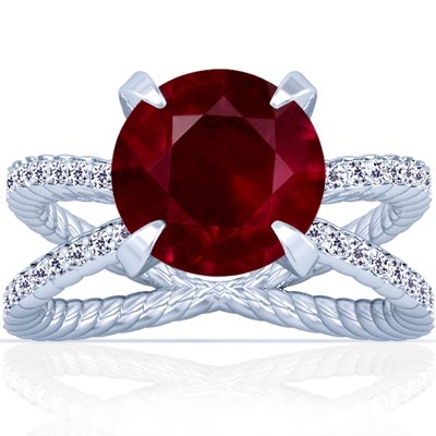 BEST BUY.. Platinum Round Cut Ruby Ring With Sidestones